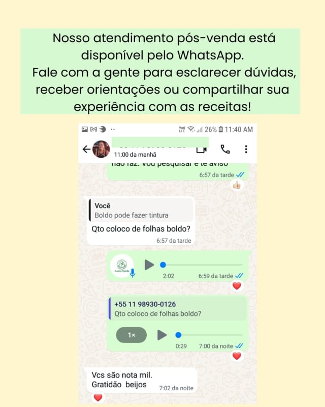 Todo o material será enviado em seu e-mail e no seu WhatsApp. Observe de cadastrar o e-mail e o fone corretamente.
