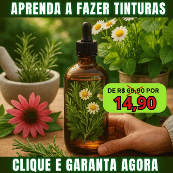 Com o e-book “Aprenda a Fazer Tinturas Medicinais em Casa”, você aprende a extrair o melhor das plantas para criar preparados naturais seguros e eficazes, feitos por você, no seu tempo, com consciência e propósito.